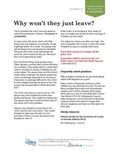 Some insight as to why the victim might stay in a domestic violence situation.