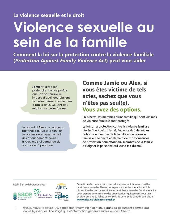 La violence sexuelle et le droit: Violence sexuelle au sein de la famille