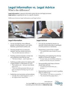 This tip sheet explains some of the main differences between legal information and legal advice.