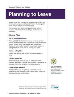 This booklet talks about making a safety plan before you leave and what to think about if you must leave in an emergency.